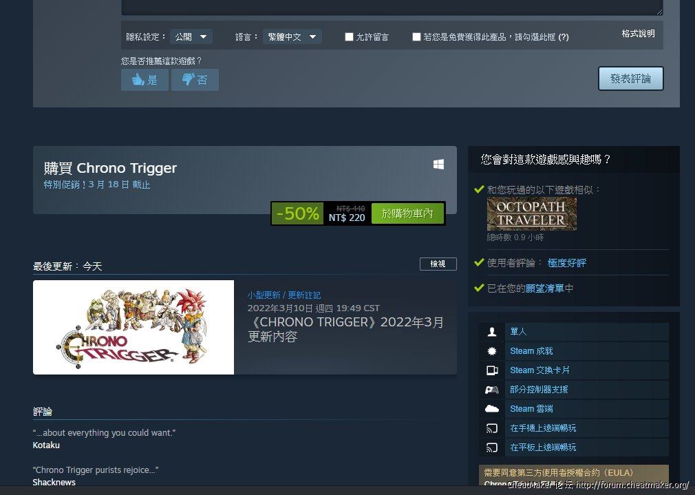 [PC] 时空之轮クロノトリガーChrono Trigger超時空之鑰 Steam-PC2022... [复制链接]